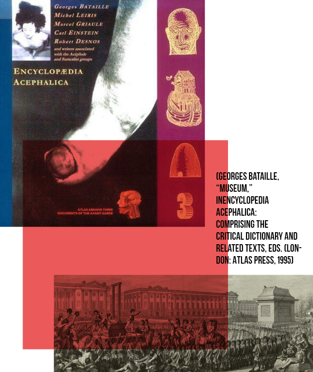 1930 წელს ჟორჟ ბატაიმ დაწერა სულ რამოდენიმე ფრაზა მუზეუმის ისტორიაზე. კრიტიკული ლექსიკონის ამ ანოტაციაში ჟორჟ ბატაი მუზეუმების წარმოშობას გილიოტინის შექმნას უკავშირებდა.