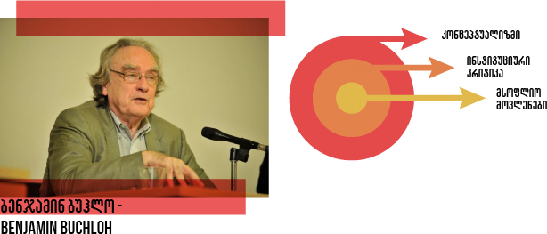 ბენჯამინ ბუჰლო 1960-იანი წლების კონცეპტუალური ხელოვნების ტრაექტორიას განსაზღვრავს, როგორც მოძრაობას ადმინისტრირების ესთეტიკიდან და ინსტიტუციური ვალიდურობიდან ინსტიტუციის კრიტიკის მიმართულებით. მაგრამ, ინსტიტუციური კრიტიკა არ უნდა მოვიაზროთ, როგორც მხოლოდ კონცეპტუალურ ხელოვნებასთან ასოცირებული მხატვრული პრაქტიკა. ეს იყო მოძრაობა, რომელიც ძნელად წარმოსადგენია სახელოვნებო სივრცის მიღმა არსებული სოციალური პროტესტისა და პოლიტიკის გარეშე.