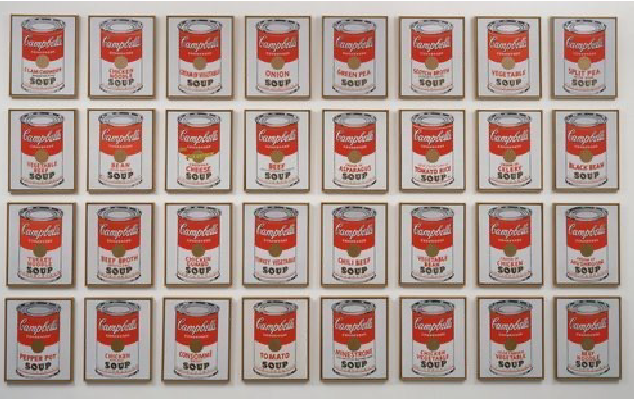 უორჰოლი ყოფით მოხმარების საგნებს ანიჭებდა ხელოვნების მნიშვნელობას. მან დასვა ხელოვნების არსის საკითხი - თუ რა განაპირობებს ერთი ხელოვნების ნიმუშის უპირატესობას მეორესთან მიმართებაში. უორჰოლის ტექნიკები და მეთოდები: ფოტოსქრინპრინტი, გამეორება, მასობრივი წარმოება, კოლექტიური პროცესი, მასობრივი ინფორმაციის საშუალებები.