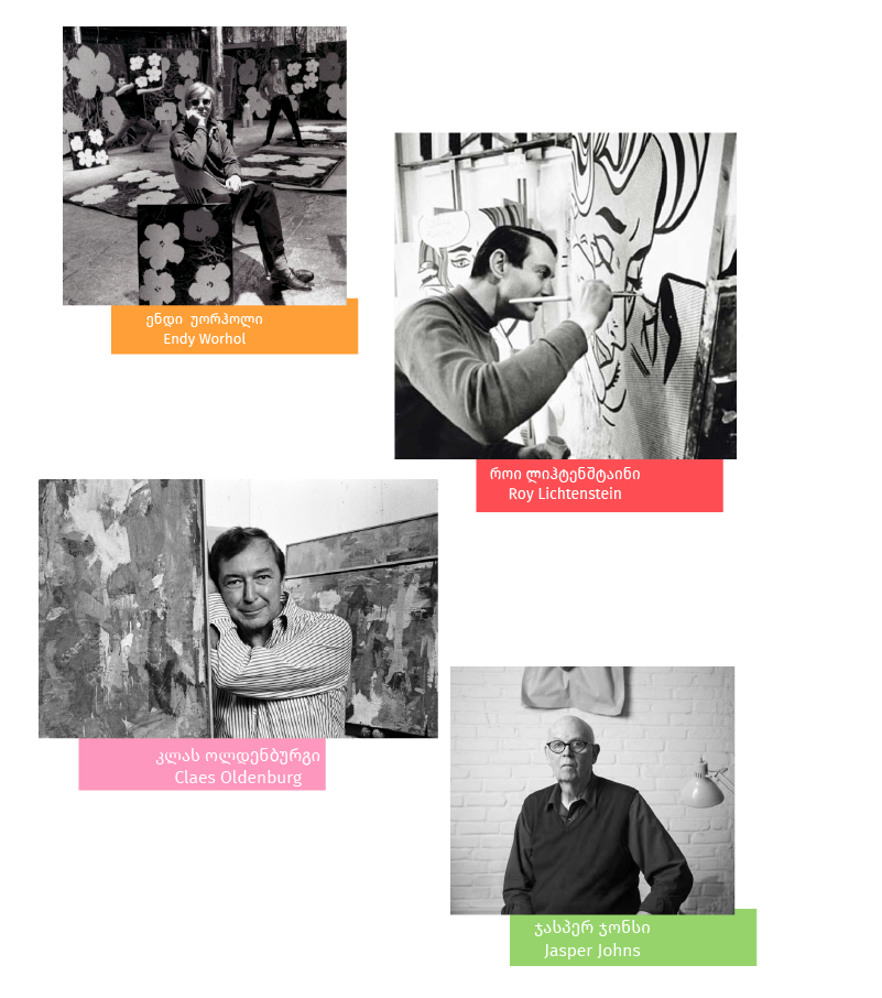 არტისტებმა თავიანთი მზერა ყოველდღიური მოხმარების საგნებზე გადაიტანეს. ენდი უორჰოლი, როი ლიჰტენშტაინი, კლას ოლდენბურგი, ჯასპერ ჯონსი შთაგონებას პოპ კულტურის იმიჯებში პოულობდნენ. მათ სურდათ დაეკავშირებინათ სახვითი ხელვნების ტრადიციები პოპკულტურის იმიჯებთან, რომელსაც ტელევიზია, რეკლამა და კინო ინდუსტრია ტირაჟირებდა.