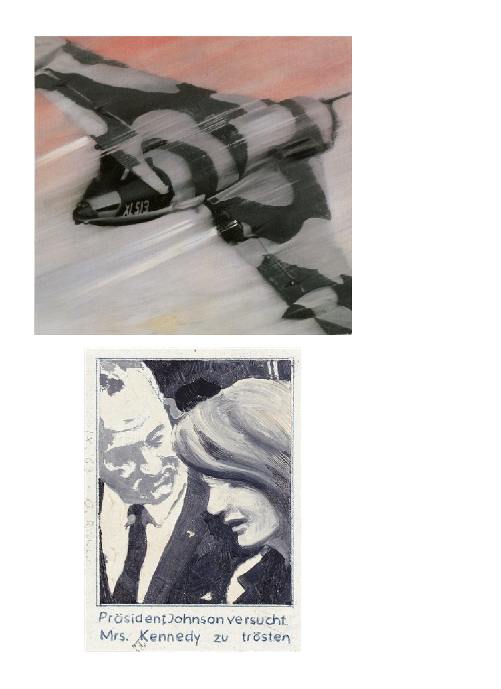 აღსანიშნავია, რომ რიჰტერის მიერ ომის ტექნიკის გამოყენება, როგორც თემა, განსაკუთრებით აქტუალური იქნებოდა 1963 წელს, როდესაც მან დახატა Düsenjäger. ეს იყო დაძაბულობის გადამწყვეტი მომენტი ცივ ომში. ნახატზე გამოსახული თვითმფრინავი, Fiat G-91, მეტსახელად "ჯინა", შექმნილი იყო 1950-იანი წლების ბოლოს ნატო-ს მიერ საჰაერო ძალებისთვის და მიღებული იყო Luftwaffe-ს და სხვა სამხედრო საჰაერო ძალებთან ერთად. პირველი სამხედრო თვითმფრინავი, რომელიც დასავლეთ გერმანიაში მეორე მსოფლიო ომის დასრულების შემდეგ შეიქმნა - "ჯინა" არის ომის შემდგომი შერიგებისა და დასავლეთ გერმანიის რეაბილიტაციის ერთგვარი სიმბოლო.