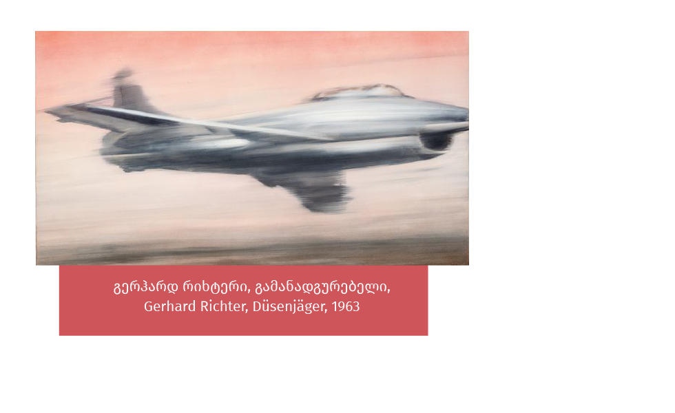 გერჰარდ რიჰტერი დღეს ერთერთი ყველაზე ძვირად ღირებული და ცნობილი მხატვარი 1960-ანი წლებში გზის დასაწყისში იმყოფებოდა. Düsenjäger (რეაქტიული გამანადგურებელი 1963), ერთ-ერთი პირველი ფოტო ნახატია, რომელიც რიჰტერის კარიერის ყველაზე მნიშვნელოვან ეტაპზე შეიქმნა, მაშინ, როდესაც რიჰტერი საჯაროდ დაუკავშირდა გერმანული პოპ არტის მოძრაობას. „პოპ არტი აღიარებს თანამედროვე მასმედიას, როგორც ნამდვილ კულტურულ ფენომენს და აქცევს მის ატრიბუტებს, ფორმულირებებსა და შინაარსს ხელოვნებად გარდაქმნის. ამრიგად, იგი ძირეულად ცვლის თანამედროვე მხატვრობის სახეს და ახდენს ესთეტიკურ რევოლუციას. პოპ არტმა დააფორმატა კონვენციური მხატვრობა და აჩვენა, რომ ის მთელი თავისი სტერილურობით, იზოლაციით, ხელოვნურობით, ტაბუებითა და წესებით სრულიად მოძველებულია. (გერჰარდ რიჰტერი ხელოვნების შესახებ 2008 წ.).
