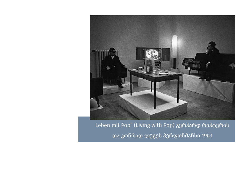 გერმანული პოპ არტის ცენტრებად: ფრანქფურტს, მიუნქენს, დასავლეთ ბერლინს მიიჩნევენ. თუმცა გერმანული პოპ არტის სამშობლო დიუსელდორფია. 1963 წელს მხატვრებმა - გერჰარდ რიჰტერმა და კონრად ლუგმა: დუსელდორფში ბერგეს ავეჯის მაღაზიაში წარმოადგინეს პერფორმანსი სახელწოდებით - “Leben mit Pop” (Living with Pop).
