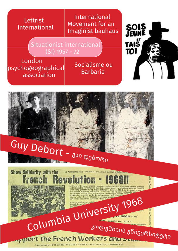 რევოლუციური ხელოვნება მუზეუმის მიღმა არსებობს, ისევე როგორც შემოქმედსა და მაყურებელზე დაყოფილი მოდელის, მიღმა. სიტუაციონისტებმა გადალახეს შემოქმედებად და მაყურებლებად დაყოფილი საზოგადოების სტერეოტიპი. მათ მიერ სპექტაკლის გ ასანადგურებლად შემუშავებული ერთ-ერთი ყველაზე ქმედითი საშუალება იყო ე.წ. ''détournement'' (მიმართულების შეცვლა). ამ ოპერაციაში ხილული ხდებოდა სიგნიფიკაციის პროცესი და შთაბეჭდილება იცვლებოდა. ''détournement'' ტექნიკას სიტუაციონისტები განსხვავებულ კონტექსტში იყენებდნენ. 1962 წლის კარიბის კრიზისმა, რომლის დროსაც ორი ზესახელმწიფოს დაპირისპირებამ პიკს მიაღწია და მსოფლიო ბირთვული ომის კატასტროფის წინაშე დააყენა, პოლიტიკური კლიმატი რადიკალურად შეცვალა. ის მმართველი სისტემის წინააღმდეგ მიმართული მასობრივი გამოსვლების კატალიზატორი გახდა. სიტუაციონისტები საკუთარ თავს, ამ მზარდი საპროტესტო მოძრაობის გონებად მოიაზრებდნენ.