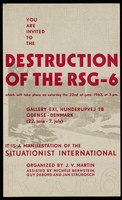 1963 წლის ივნისში, სიტუაციონისტური ინტერნაციონალის საკნდინავიური ფრთის ერთერთი ლიდერის მარტინის (J.V. Martin) ორგანიზებით დანიურ ქალაქ ოდენსე-ში (Odense) ახლად გახსნილ Galleri Exi -ში მოეწყო გამოფენა- აქცია “Destruction of RSG-6”. ფაქტობრივად ეს იყო ბრიტანული ჯგუფის - Spies for Peace მიერ ორი თვით ადრე განხორციელებული პროექტის გაგრძელება. სიტუაციონ- ისტებმა ბრიტანელ აქტივისტთა აქციის მულტიმედიური ვარიანტი გაათამაშეს.