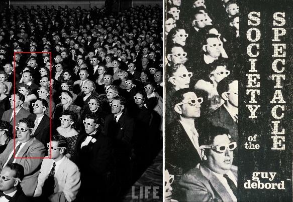 „რეალობა ჩანაცვლებულია სანახაობით, რომელიც დიდი ხანია აღარ არის გართობა, ვინაიდან შეზრდილია საზოგადოებასთან, რომელშიც მასმედიამ ჩაანაცვლა ენა, მეხსიერება და უშუალო ურთიერთობა. სპექტაკლის საზოგადოება ჩამოყალიბდა, როგორც ბაზრის განვითარების რეზულტატი“.